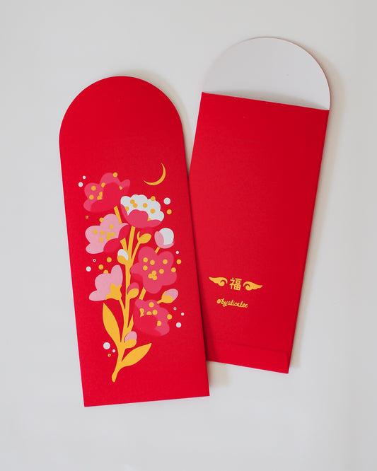 My envelopes have the character 福 ("fu") on them, which means good luck! I wanted to design these to both be functional as red envelopes, and also lovely art prints worthy of being displayed in your home.