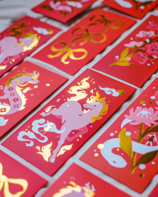 Designing red envelopes will be my annual tradition until the full 12-year zodiac is completed! So far we have the dragon (2024), snake (2025), and horse (2026).